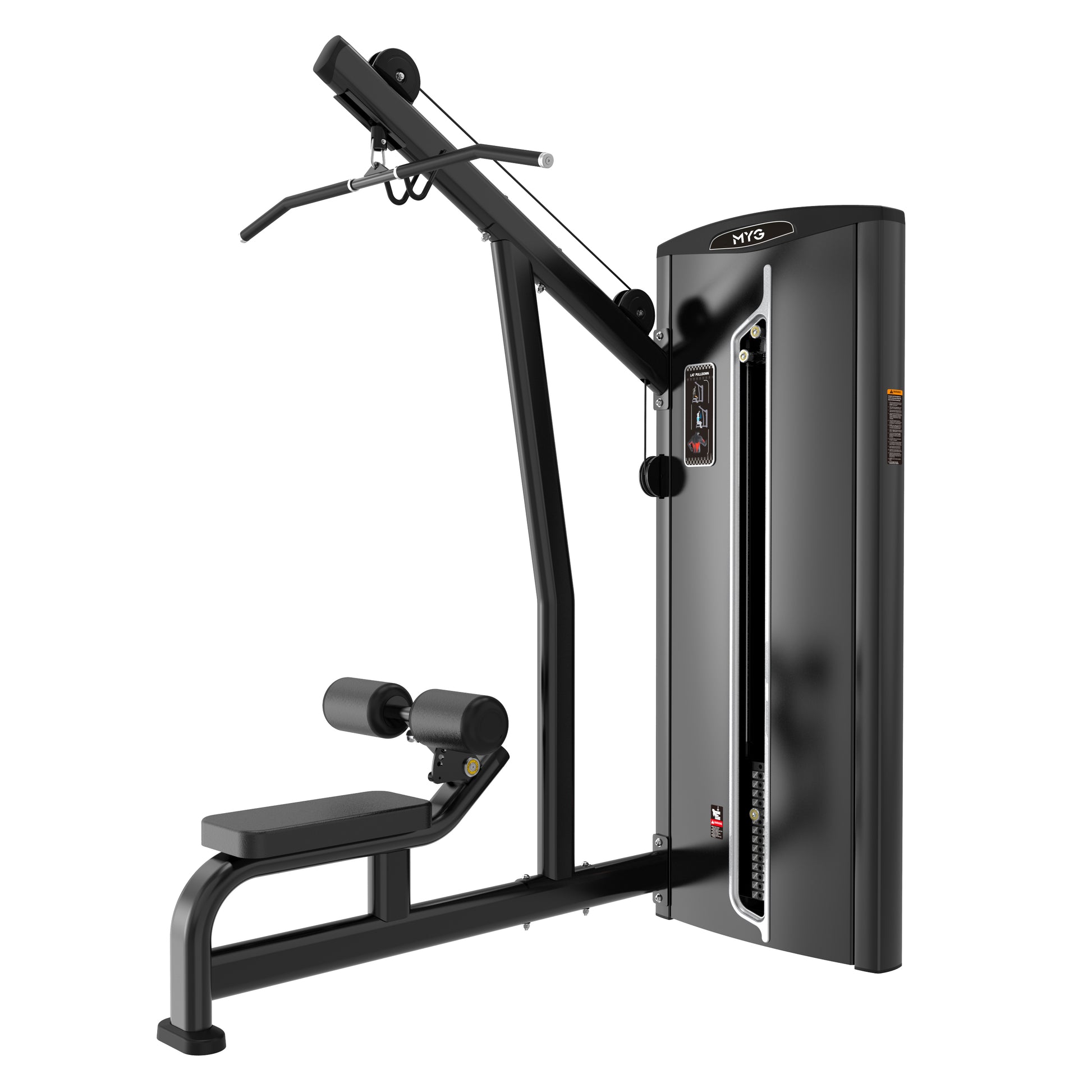 A fundamental machine for back development, the Lat Pulldown engages the latissimus dorsi, traps, and shoulders for improved upper body strength.