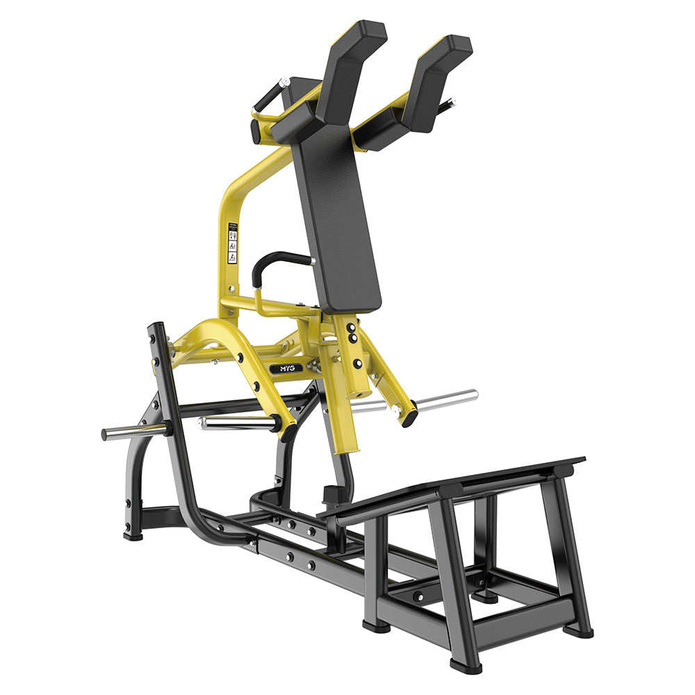 A powerful lower-body training machine, the V Squat supports controlled squatting for safe and effective leg development.