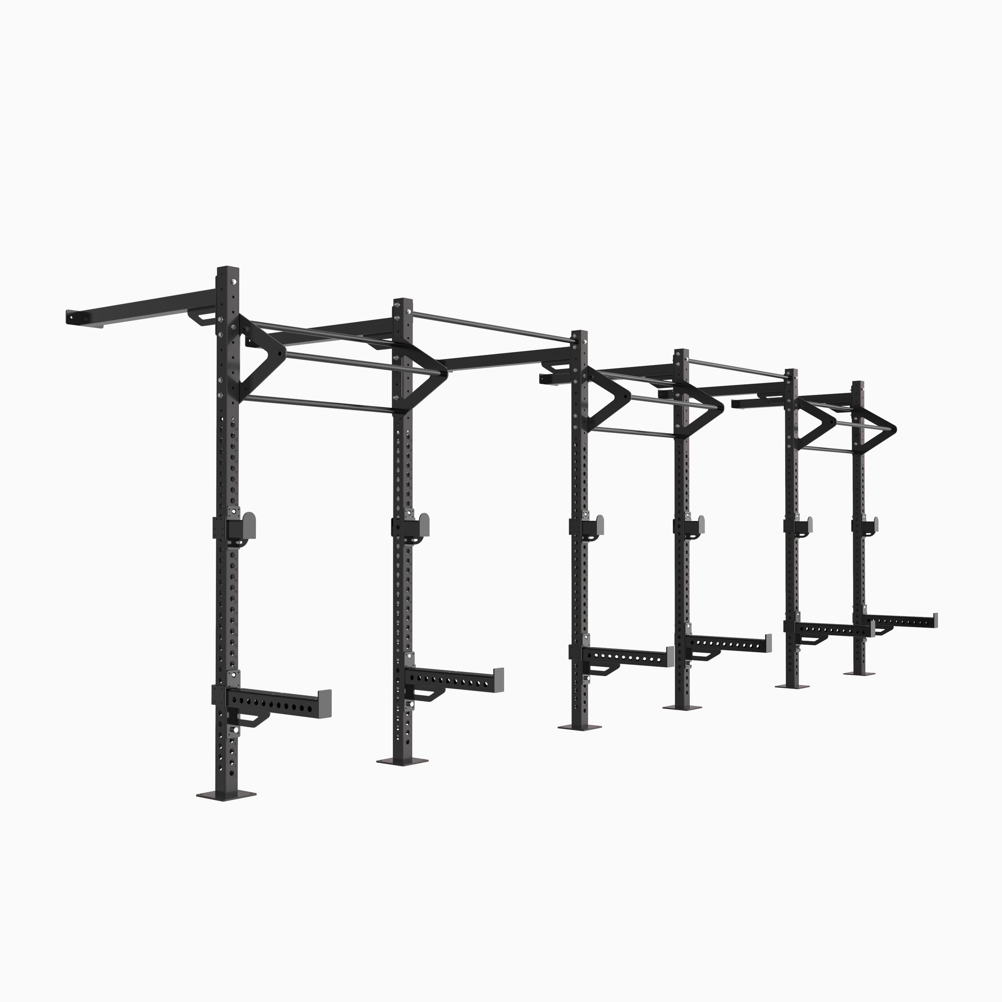 Designed for high-intensity strength and functional training, this 5-bay wall-mounted half rack offers a variety of pull-up bar options along with a target ball stand. It is built to support multiple users simultaneously, making it an excellent addition to any gym looking for space-efficient versatility.