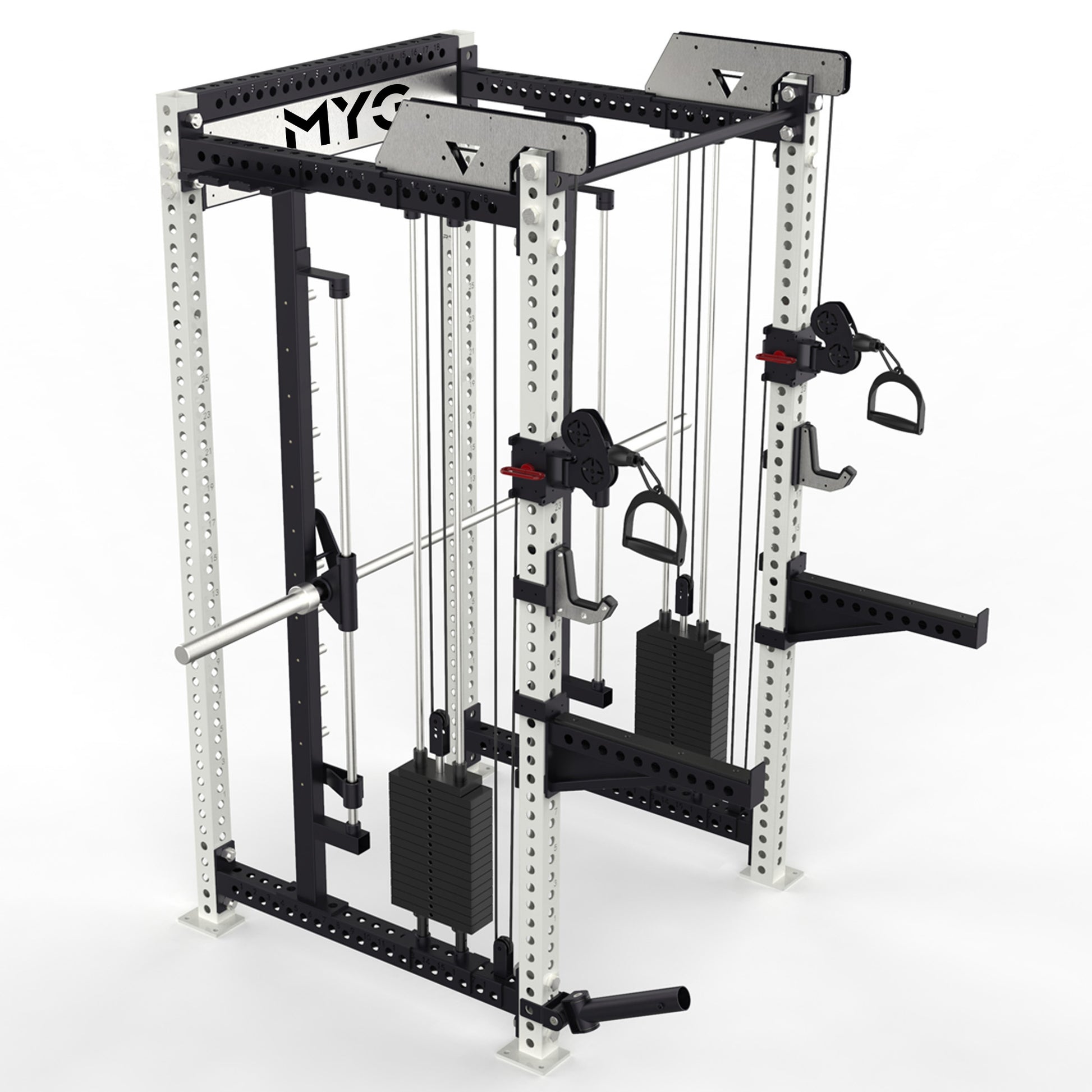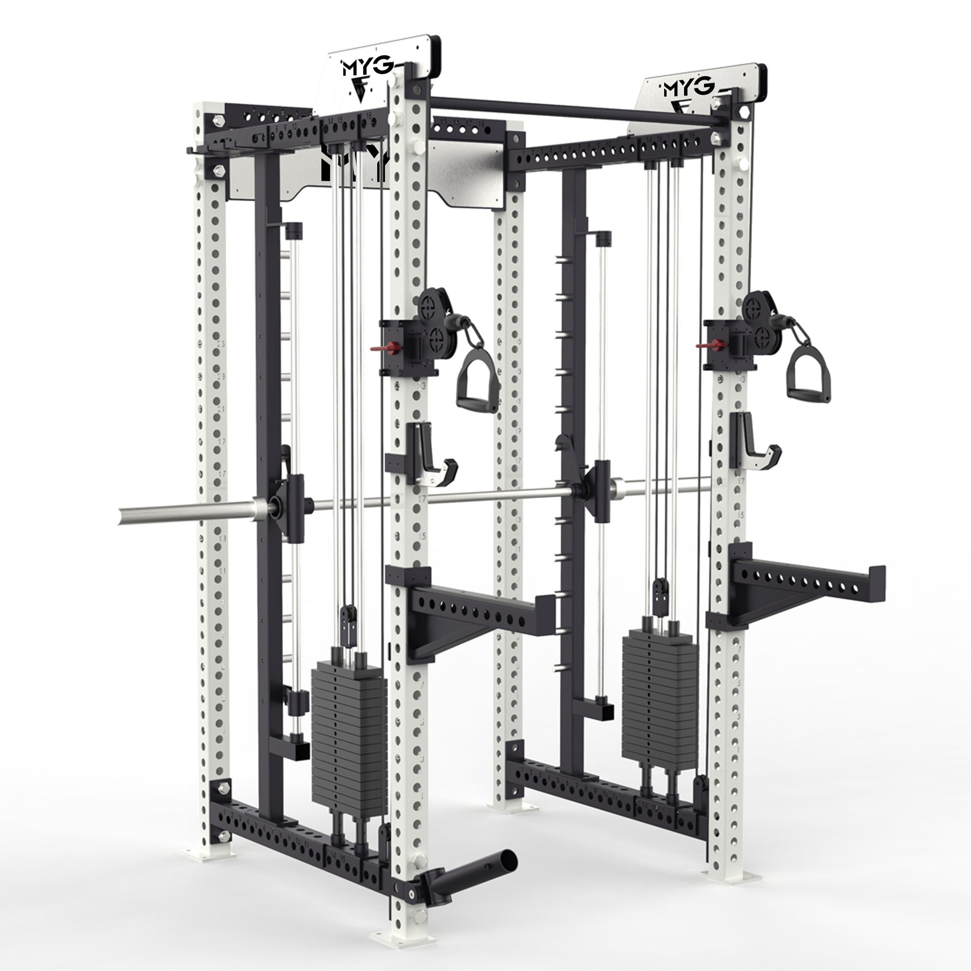 This all-in-one training system designed to provide a wide array of exercise options. Combining the controlled movement of a Smith machine, the safety and versatility of a squat rack, and the flexibility of a dual adjustable pulley system, this setup is perfect for anyone looking to elevate their strength, muscle-building, and functional training.