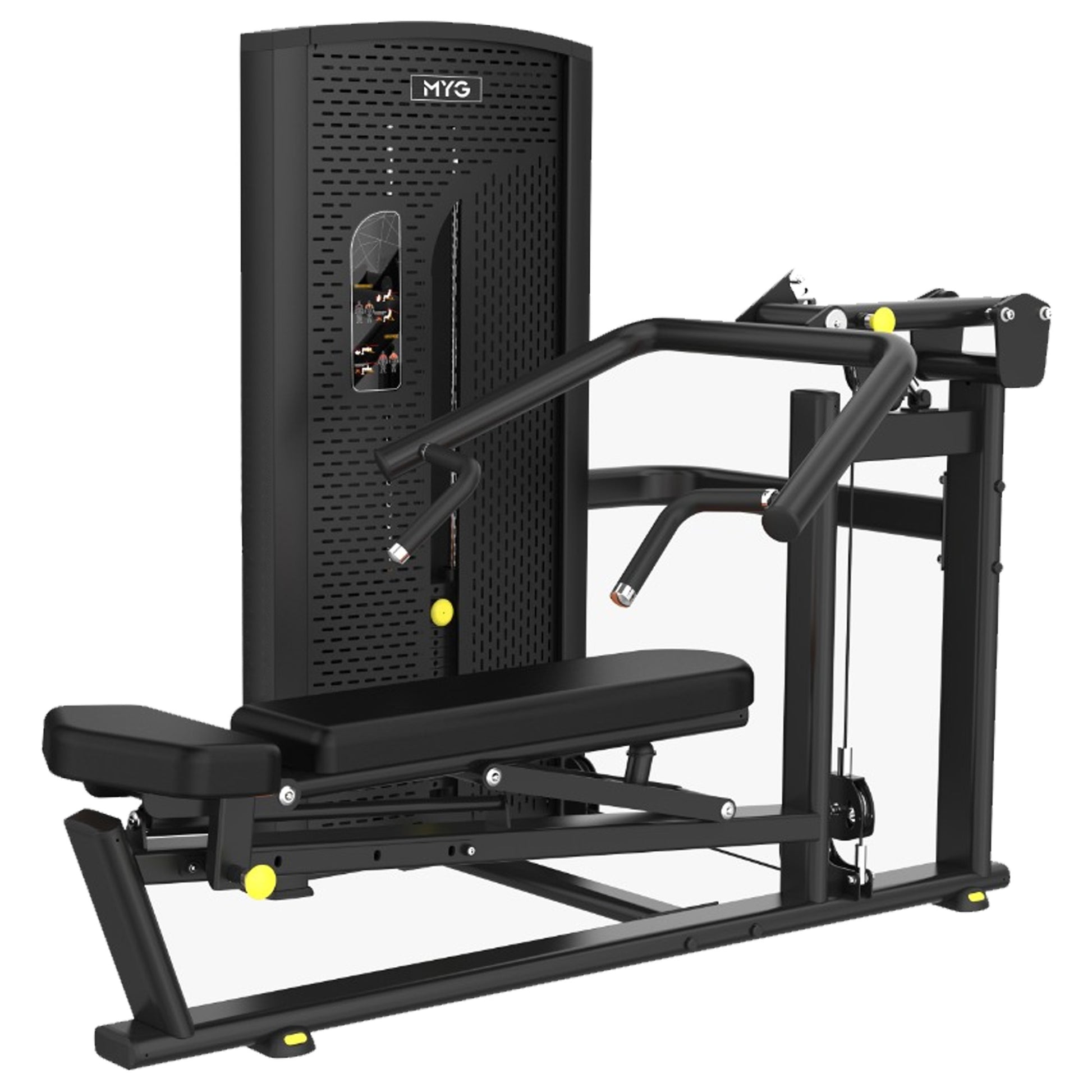 A versatile machine that combines multiple pressing exercises into one unit. Ideal for users looking to train chest, shoulders, and triceps with controlled resistance.