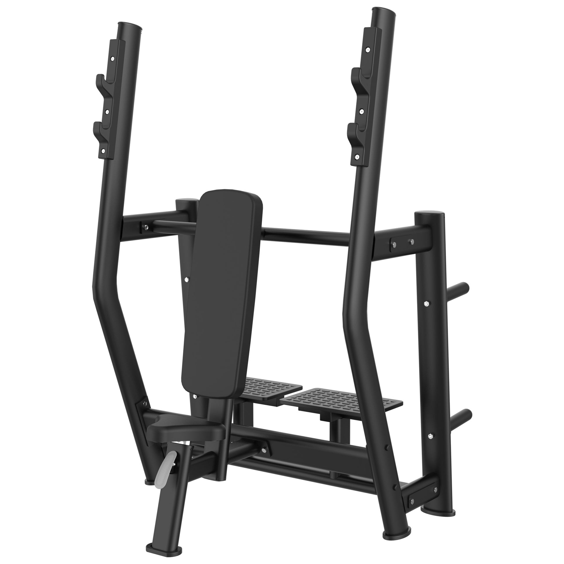 A vertical press bench designed for shoulder and chest exercises, providing firm back support for correct posture.
